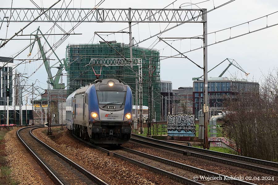 PKP Intercity EU160-010 02.04.2024, track Gdansk Glowny - Gdansk Wrzeszcz Photo W. Kolins |