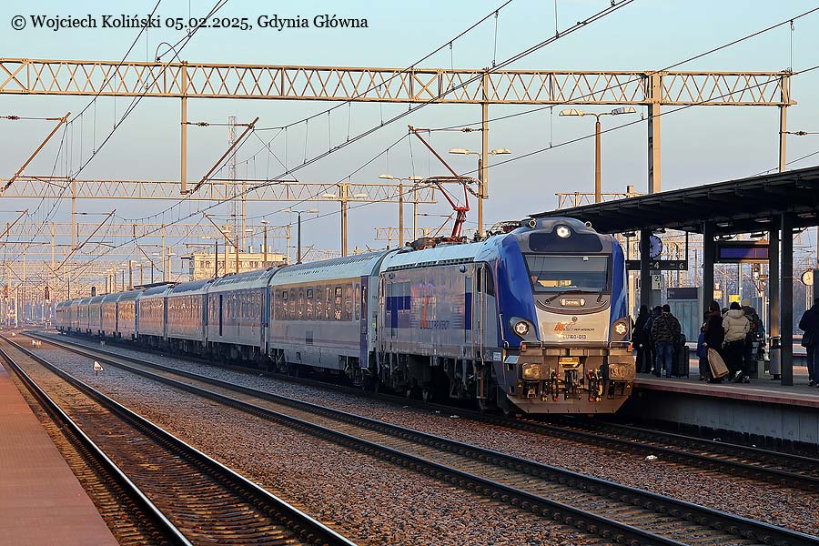 PKP Intercity EU160-013 with the passenger train "Baltic Express" Gdynia Glowna - Praha hlavni nadrazi 05.02.2025, Gdynia Glowna Photo W. Kolins |