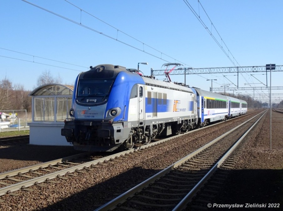 EU160-016 with an IC ZAMENHOF to Zielona Góra;