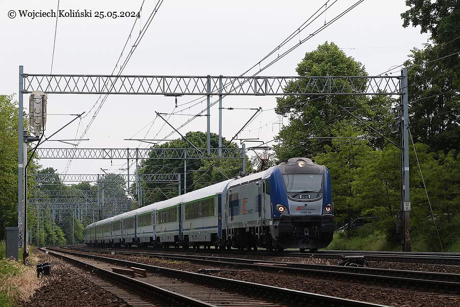 PKP Intercity EU160-018 with the passenger train "Pobrzeze" Lodz Fabryczna - Kolobrzeg 25.05.2024, track Sopot - Gdynia Orlowo Photo W. Kolins |