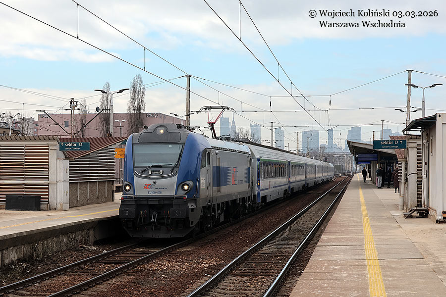PKP Intercity EU160-018 with the passenger train "Dabrowska" Wroclaw Glowny - Bialystok 03.03.2026, Warszawa Wschodnia Photo W. Kolins |