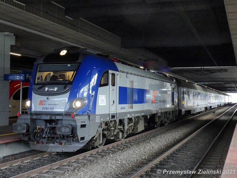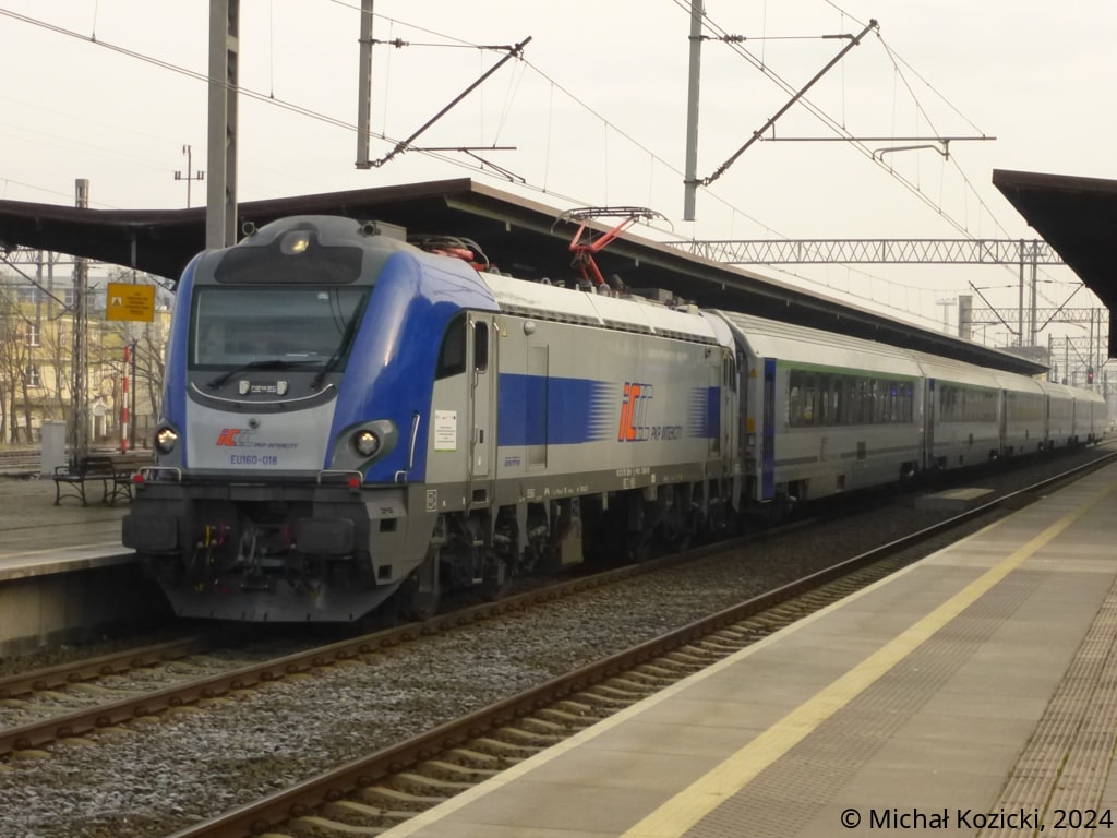 EU160-018 with an IC Górski to Lublin and Rzeszow;