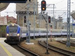 Not, this is not Germany, this is the capital of Poland. New EU160#022 of PKP Intercity with express train to Krakow and some Berlin-Warszawa Express at Warsaw East Station.