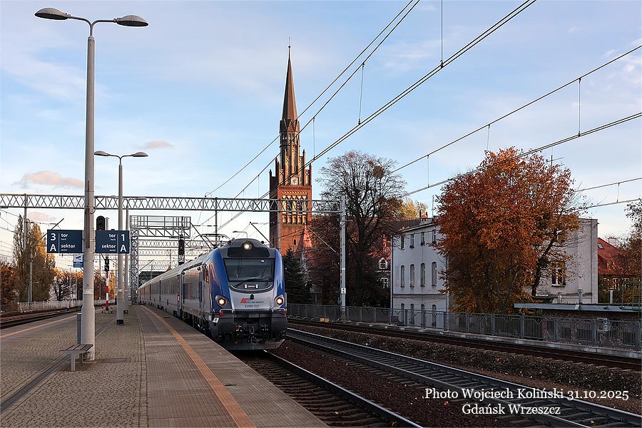 PKP Intercity EU160-022 with the passenger train "Bachus" Zielona Gora Glowna - Gdynia Glowna 31.10.2025, Gdansk Wrzeszcz Photo W. Kolins |