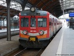 An EMU EN57-1281rb of Polregio at railway station Krakow Gl, using a Suburban train.