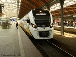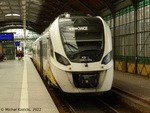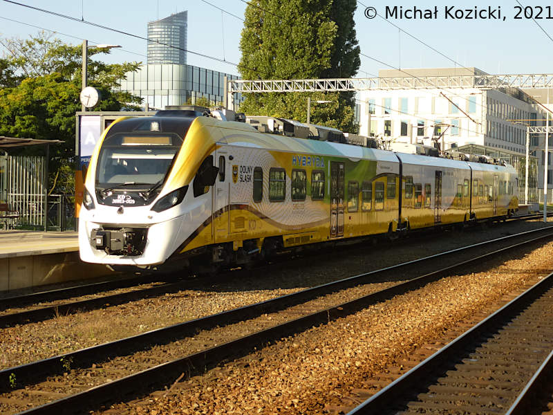 KD 36WEh-012 has reached its end station Wroclaw Gl. on a service from Trzebnica, Poland, 08.10.2021. Six such hybrid trains have been ordered by the operator primarily to handle local connections from Trzebnica to Swidnica via Wroclaw and Sobotka.