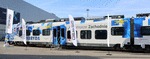 | Alstom Coradia HC for CFL, three-car set No. 2405 next to the Newag Impuls2 (EN63H-008). InnoTrans 2022, Berlin. tobias b köhler |