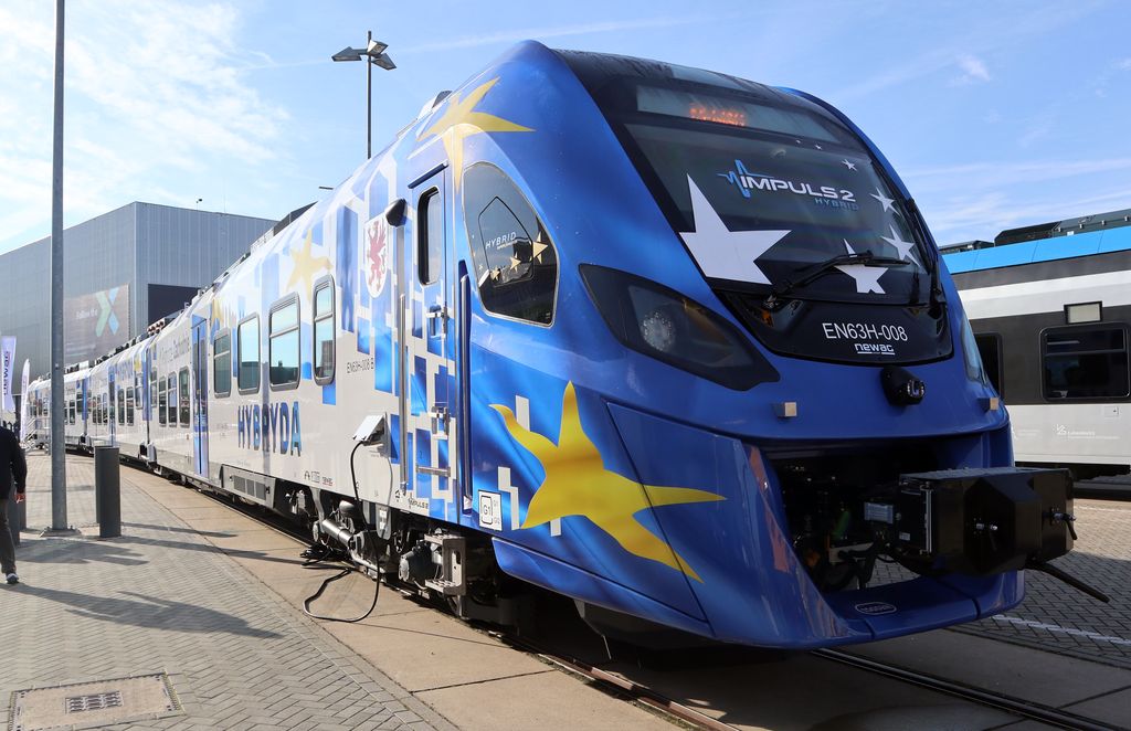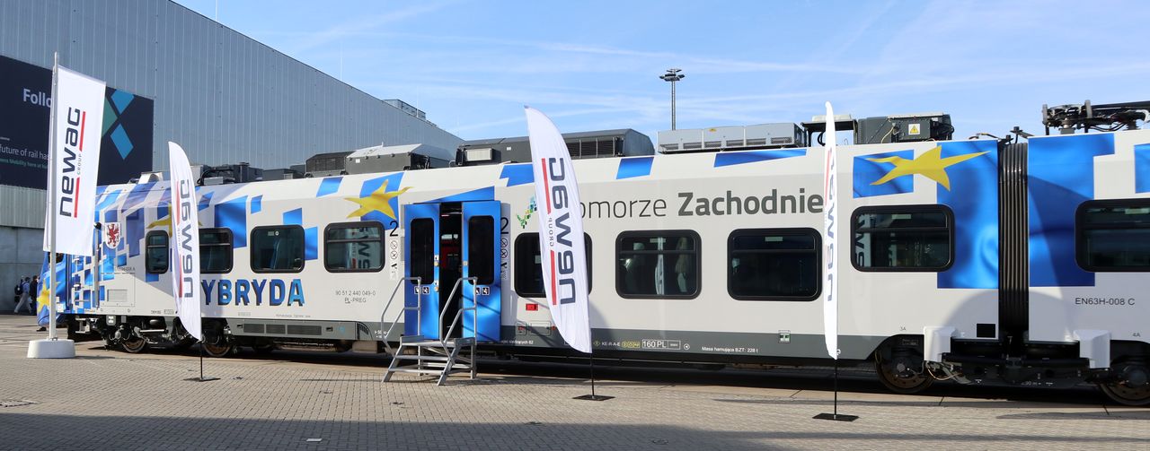 | EN63-008 (90 51 2 440 049-0 PL-PREG + 90 51 2 440 051-6 PL-PLREG). Newag type Impuls2 36WEhd, length 59.3 m, power 1600 kW, 150 seats, 160 km/h (electric) / 120 km/h (diesel). InnoTrans 2022, Berlin. tobias b köhler |