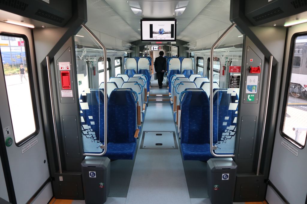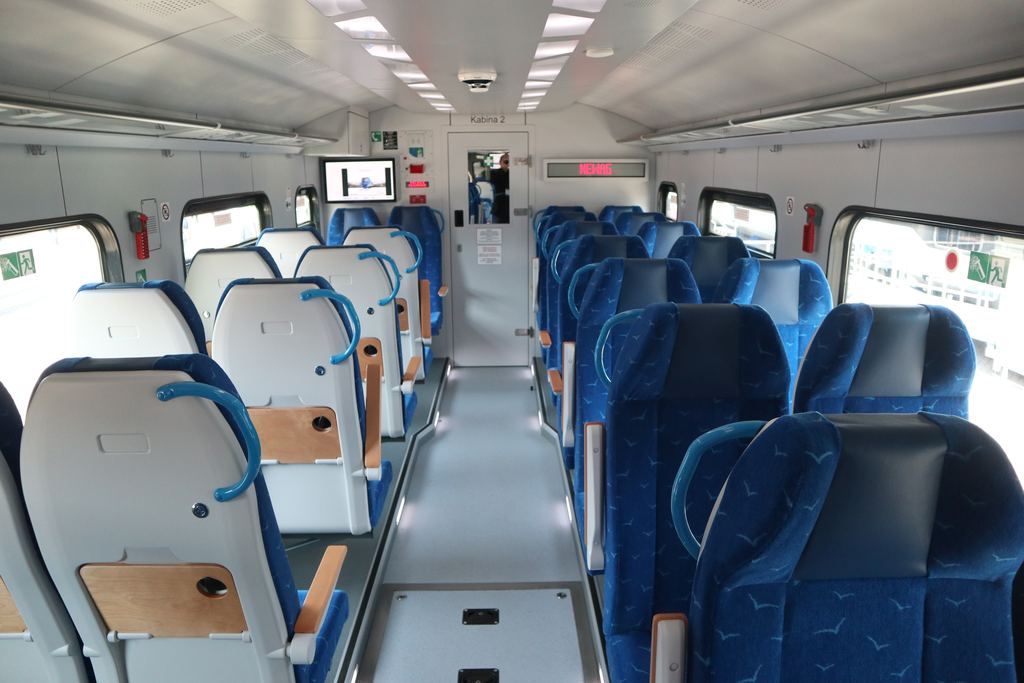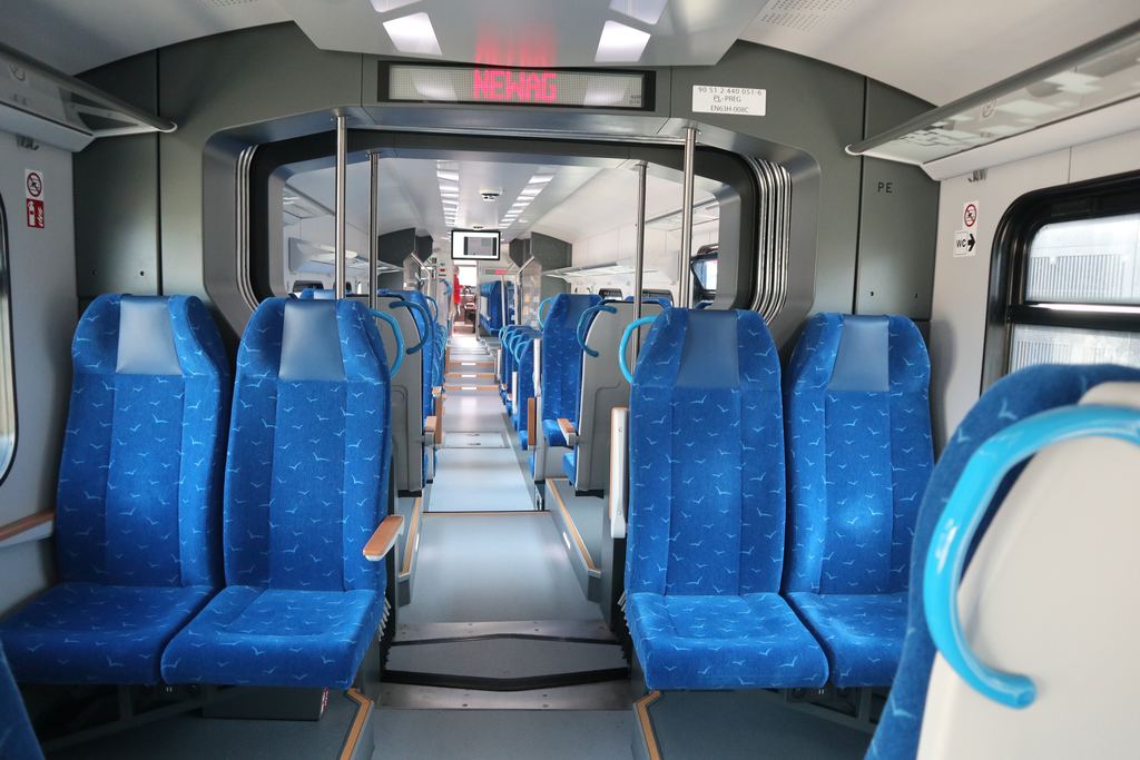 | EN63-008 (90 51 2 440 049-0 PL-PREG + 90 51 2 440 051-6 PL-PLREG). Interior with steps towards the middle high-floor section. InnoTrans 2022, Berlin. tobias b köhler |