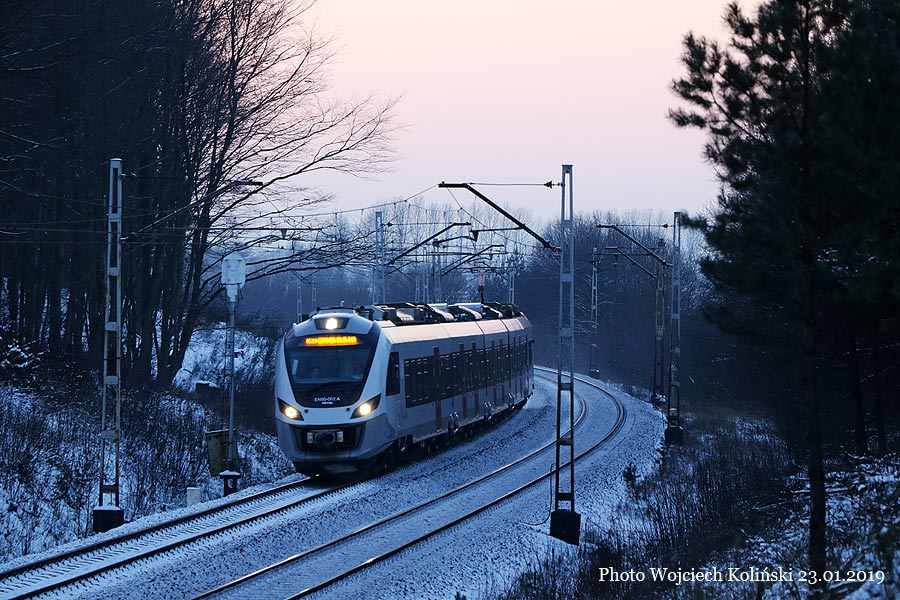 Polregio EN90-002 as a passenger train Slupsk - Gdynia Glowna 22.01.2019, track Reda Pieleszewo - Reda Photo W. Kolins |