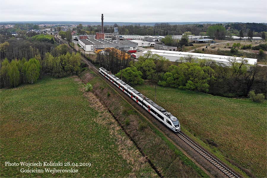 Polregio EN90-004 as a passenger train Gdynia Glowna - Slupsk 28.04.2019, track Goscicino Wejherowskie - Luzino Photo W. Kolins |