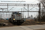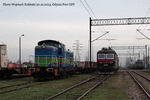 Lotos Kolej SM42-2600 with platform transport with rails. Behind it you can see a train of the SKM Trojmiasto company (EN57-804+EN57-912), borrowed from Polregio 11.03.2014, Gdansk Wrzeszcz Photo W. Kolins |