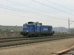 Orion Kolej SM42-2350 with a work train is leaving Rebiszow, Poland, 28.03.2018.
