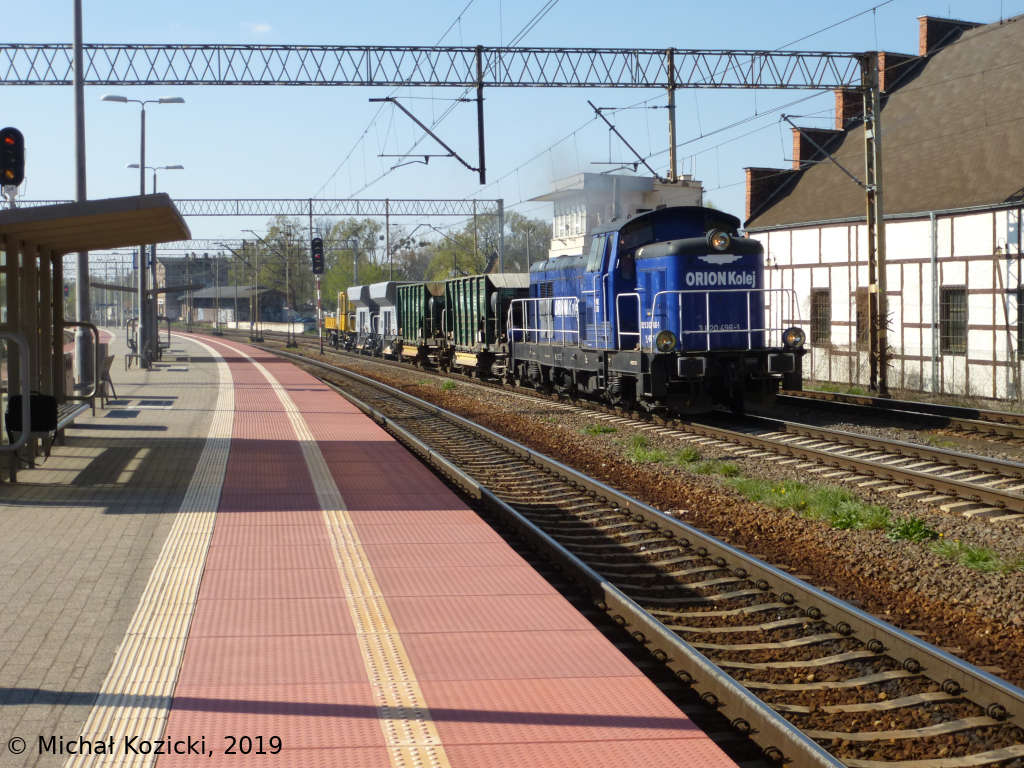 Orion Kolej SM42-2433 with a work train is passing Poznan Staroleka, Poland, 15.04.2019.
