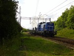 Orion Kolej SM42-2422 with a work train is seen leaving Rebiszow, Poland, 17.07.2020.