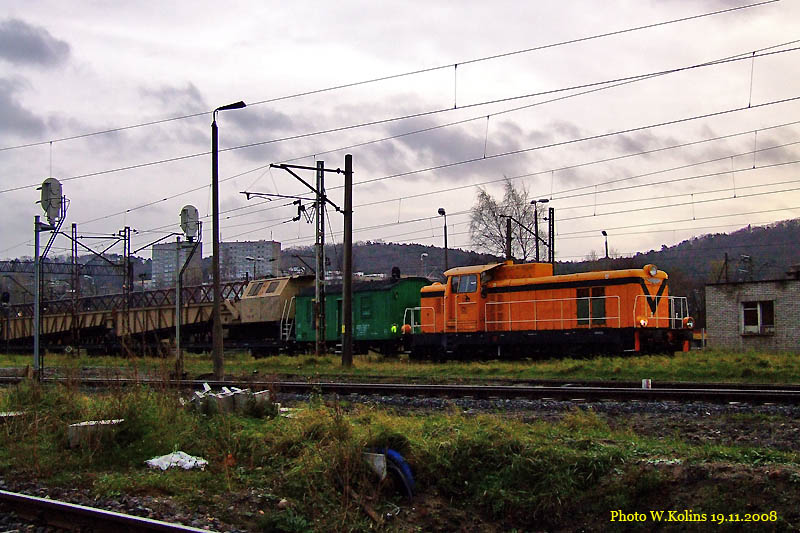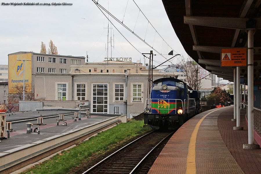 Pomorskie Przedsiebiorstwo Mechaniczno - Torowe (PPMT) A working train near the platform of SKM 08.11.2014, Gdynia Glowna Photo W. Kolins |