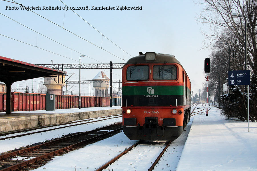 Pol-Miedz Trans M62-1845 with the freight train Naterki - Chrusciel 09.01.2018, Chrusciel Photo W. Kolins |