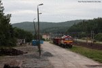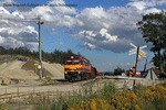 Rail Polska M62M-006 with a basalt carrying train arrives in Rebiszow, Poland, 10.09.2009.
