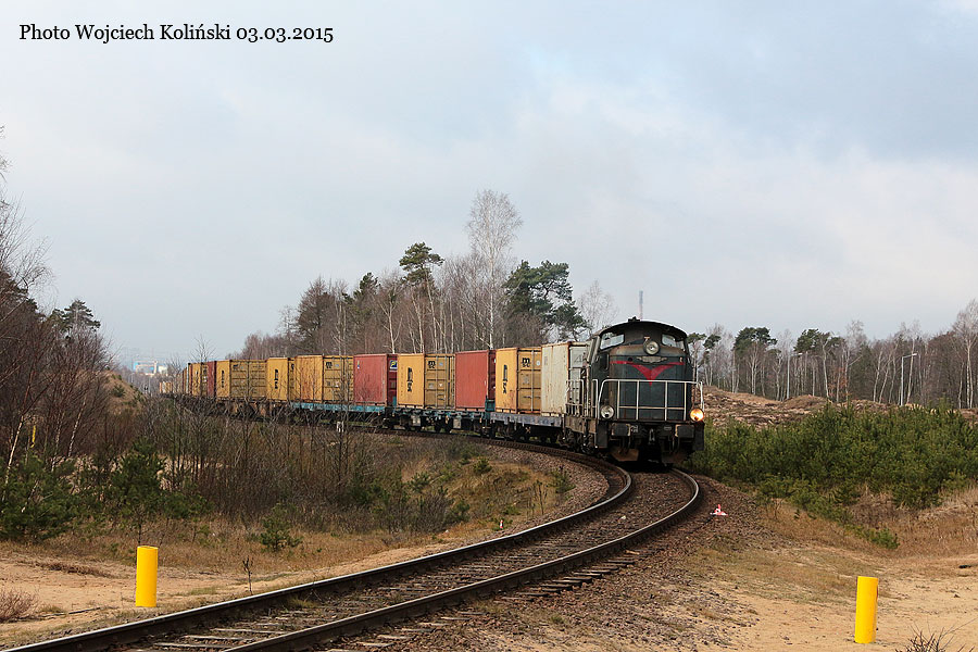Wiskol SM42-2420 with the freight train from Gdansk Port Polnocny 03.03.2015, track Gdansk Port Polnocny - Deepwater Container Terminal Photo W. Kolins |