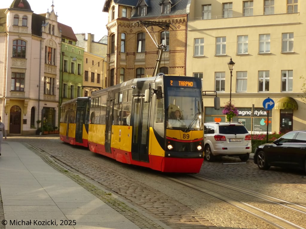 Konstal 805Na-MM No. 89 and 90 on route 2 winds its way through the narrow streets in the city centre, Grudziadz, Poland, 15.09.2025.