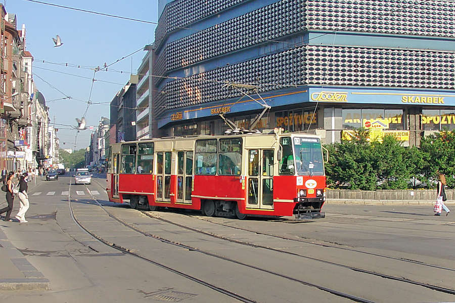 Katowice 105Na 505 turning north on line 13 at Katowice Rynek on Friday June 24th, 2005.