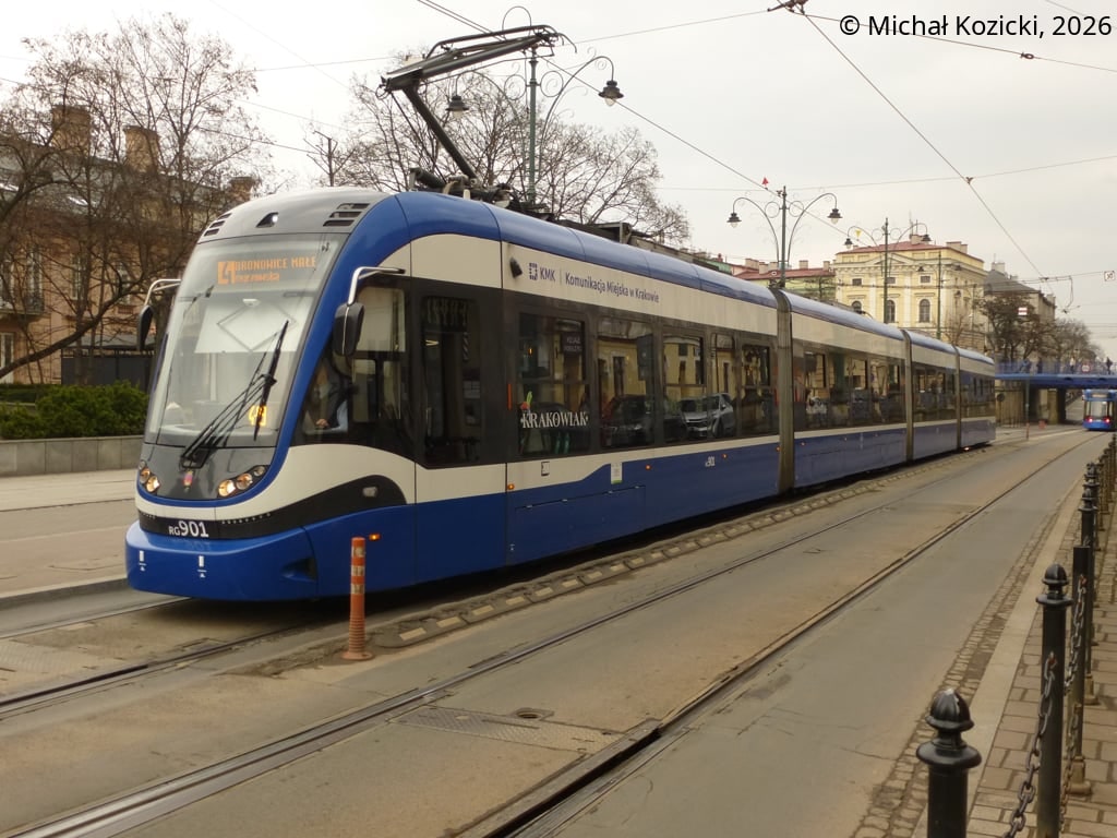 Pesa 2014N Krakowiak No. RG901 on route 4 at Teatr Slowackiego, Krakow, Poland, 24.03.2025.