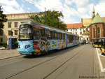 | Schnittig sieiht er aus, dieser Wagen 417 auf seinem Weg auf Linie 2 nach Cmentarz Rakowiecki und kurz vor der Hst. Stary Kleparz. In ihm steckt ein Lohner Type E6, so wurde er 1981 gebaut und fuhr bis 1/2010 in Wien. Dr. Sternol, Eckart (Foto) Dr.Sternol@t-online.de |
