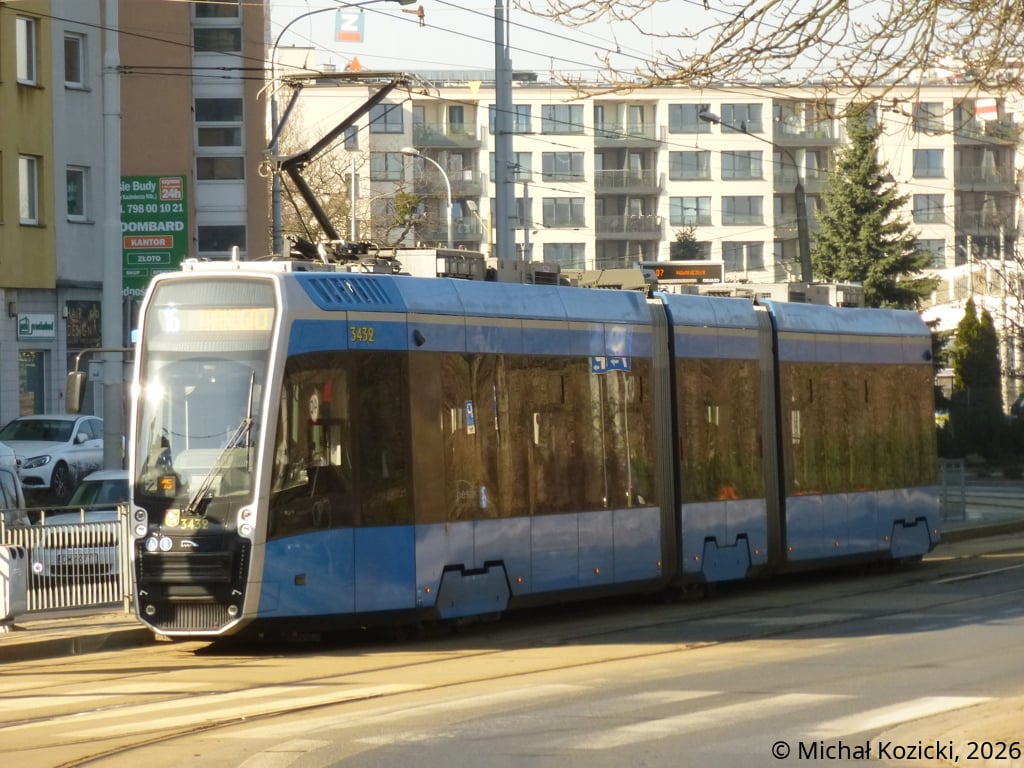 Pesa Twist 146N No. 3432 on route 16 at Slowianska, Wroclaw, Poland, 07.03.2026.
