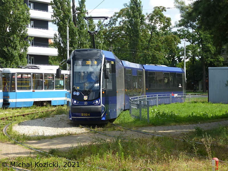 Moderus Beta No. 2924 on route 16 is seen at Tarnogaj end loop, Wroclaw, Poland, 29.07.2021.