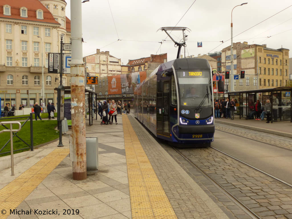 Moderus Beta No. 2928 on route 8 is stopping at Dworzec Glowny PKP, Wroclaw, Poland, 21.10.2018.