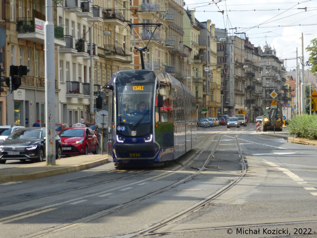Moderus Beta No. 2936 on route 6 will soon be stopping at Nowowiejska, Wroclaw, Poland, 29.07.2021.