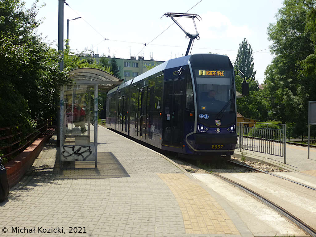 Moderus Beta No. 2937 on route 3 at Lesnica end loop, Wroclaw, Poland, 13.07.2021.