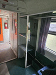 An interior in second class passenger car of type B11 , standing on railway station Bucuresti Nord in compisition of the express train R 987 to Mangalia.