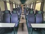 An interior in second class passenger car "Bmee" of CFR (Caile Ferate Romane / Romanian Railways) at Bucuresti Nord in composition of IR 1558 from Buzau.