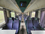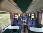 An interior in second class passenger car "Bmeet" of CFR (Caile Ferate Romane / Romanian Railways) in Bucuresti Nord in composition of IR 1681 to Constanta.