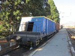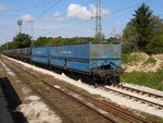 A freight car "Fabls" of private Romanian operator GFR ("Grup Feroviar Roman") at railway station Vetovo in composition of freight train.