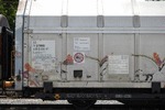 A freight car with type "Laaeilprs" of SJ (Statens Jarnvagar / Swedish Railways) at central railway station Plovdiv in composiution of an OPTIMA train. A video about departuring the train from Plovdiv, you can see here: