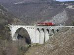 SZ class 813/814 crossing bridge in Solkan (Transalpina)