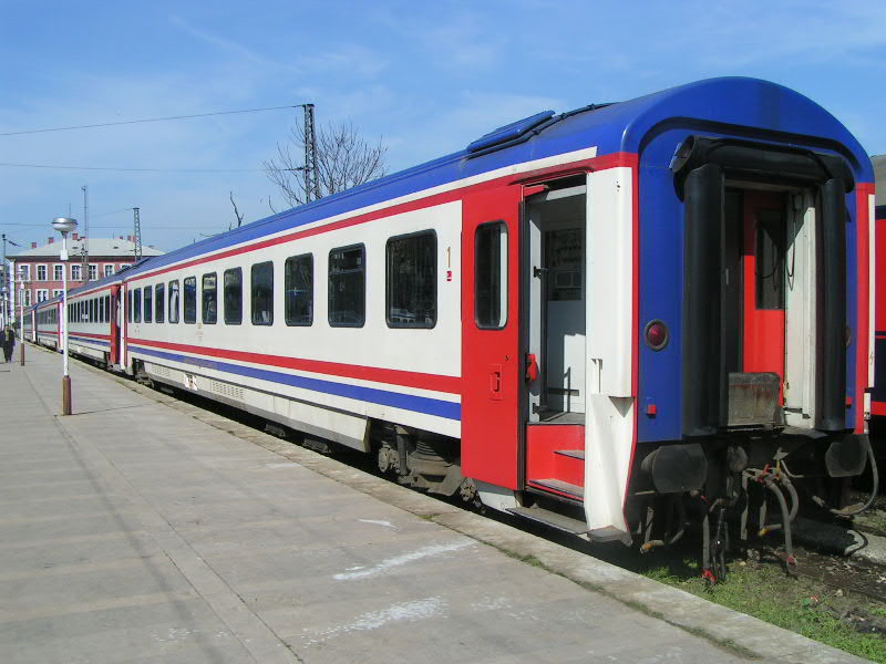 TVS-2000 1st-class (compartments) car (Alm) of TCDD, seen in the consist of Ekspres 81722 (Istanbul-Sirkeci ---> Kapikule, with through-cars to Uzunköprü).