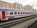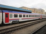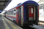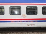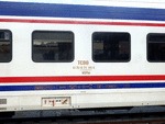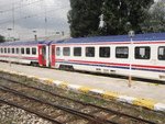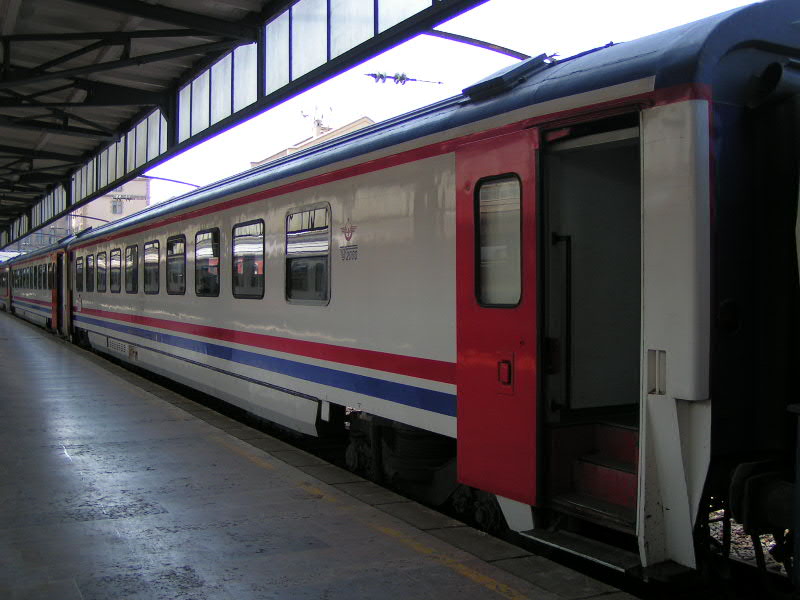 A passenger car type "WSPlm" of TCDD (Turkiye Cumhuriyeti Devlet Demiryollari / Turkish Railways ) standing at railway station Ankara in composition of train "Izmir Mavi Treni" to Izmir (Basmane).A video movie about departuring the train you can see on this adress: