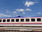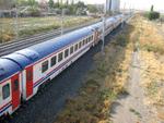 TVS-2000 Pullman car (WSPlm) of TCDD, seen in the consist of E 31127 "Izmir Mavi Tren" (Izmir-Basmane ---> Ankara), next to the Istanbul-Ankara HTH (Stage 1: Eskisehir-Esenkent).