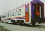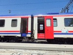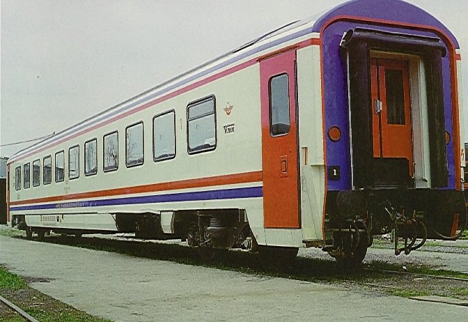 A modernizied second class pullman car TVS 2000 of TCDD (Turkiye Cumhuriyeti Devlet Demiryollari / Turkish Railways ) type "WSPlm" standing on central railway station Plovdiv in composition of the special train from Istanbul Sirkeci to Munchen.The main aim for this train is relationship and official visit from turkish official delegation to celebrate the 50th anniversary of the first traffic of OPTIMA train.On these photos , taken on 27th Oktomber you can see a different cars , like generator , sleeping , restaurant and pullman.