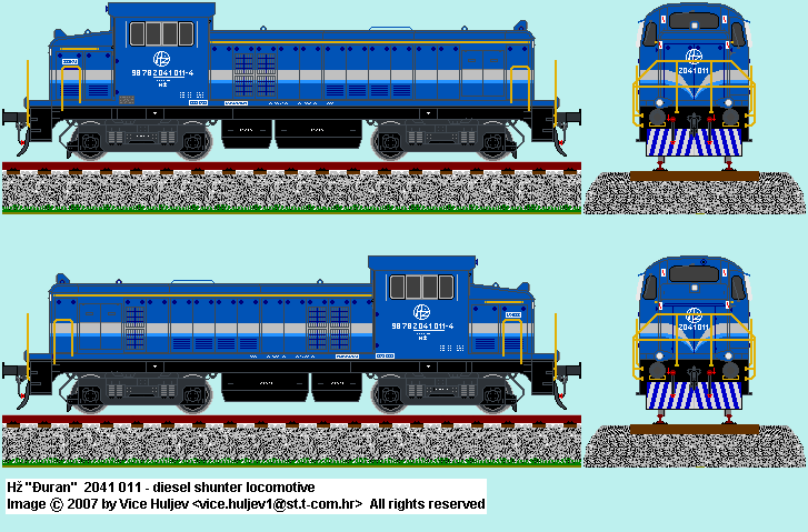 | Hž 2042 101 diesel shunter locomotive (subclass 100 which was rebuilt from class 2041)in blue color with air condition Drawn by : Vice Huljev vice.huljev1@st.t-com.hr |