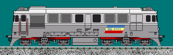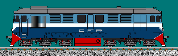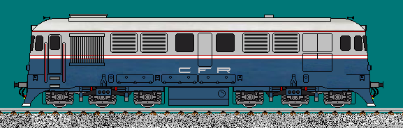| CFR passenger-train diesel locomotive modernised with GM engine. Top speed 120km/h, 2100HP. Nicknamed "Gimmy". Drawn by Andrei Stoian, sethetesh@yahoo.com |