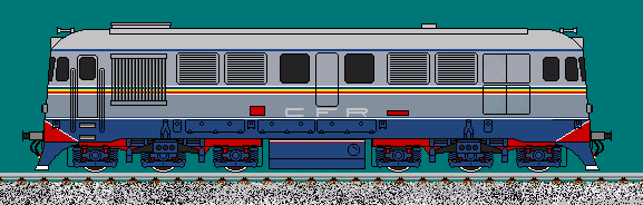 | One of many CFR liveries for class 60-62 diesel-electric locomotives.If you know others, please post them.Drawn by Andrei Stoian, sethetesh@yahoo.com |