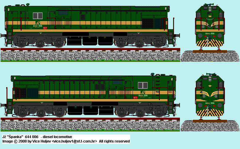 | Hž 2062 006 diesel locomotive, in green color and orginal GMD lights Nicknamed ''licanka'' Based on drawing: Vice Huljev Edit: H.Stipica |