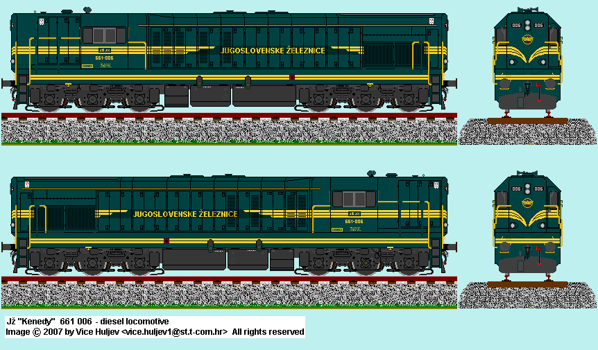 | Jž 661 216 diesel locomotive, in orginal green color( rest in peace at Croatian Railway museum) Nicknamed ''kenedy'' Drawn by : Vice Huljev vice.huljev1@st.t-com.hr |