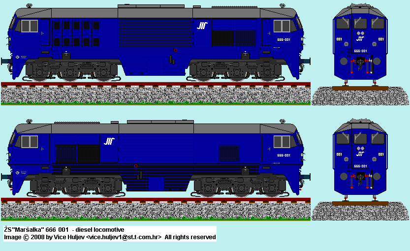 | Hž 2062 036 diesel locomotive, in new blue color with air condition Nicknamed ''licanka'' Based on drawing: Vice Huljev Edit: H.Stipica |