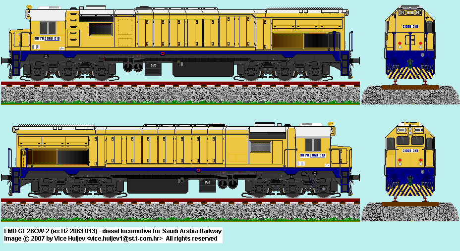| EMD GT 26CW-2 (ex Hz 2063 013) diesel locomotive for Saudi Arabia Railway. Drawn by : Vice Huljev vice.huljev1@st.t-com.hr |