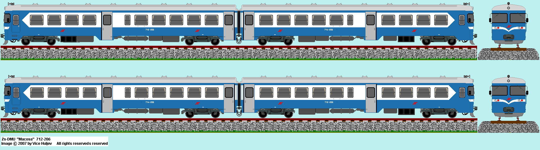 | Jž DMU 712 107 in old JŽ colors Nicknamed : ''Macosa'' Drawn by: Vice Huljev <vice.huljev1@st.t-com.hr> |